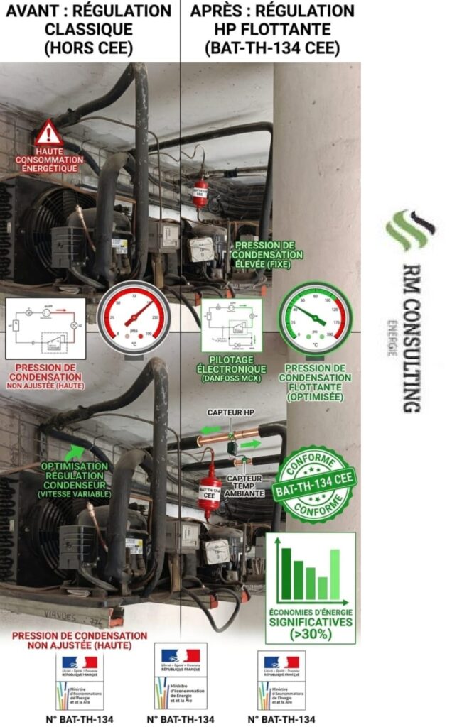 – Installation de régulations HP/BP flottantes sur les groupes frigorifiques